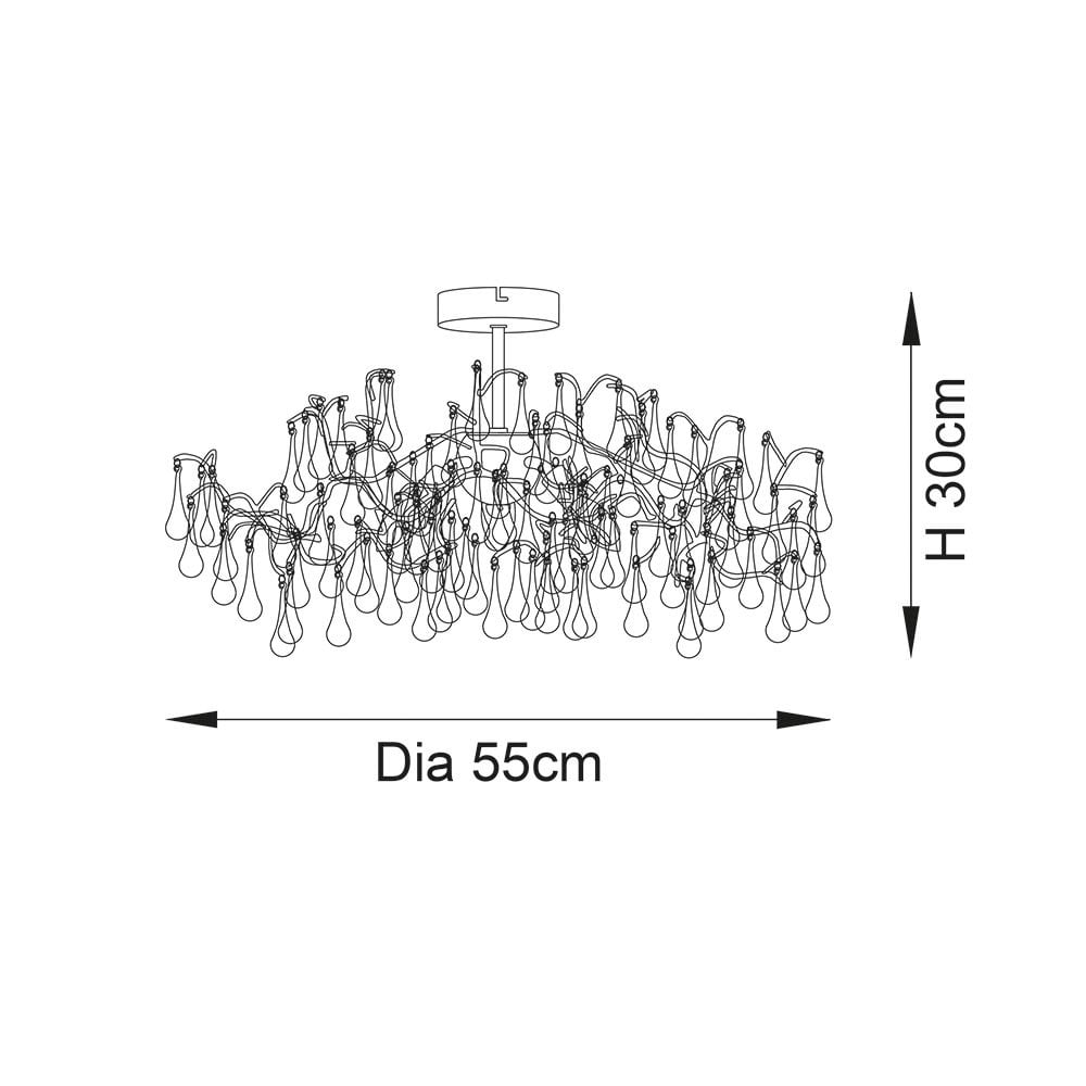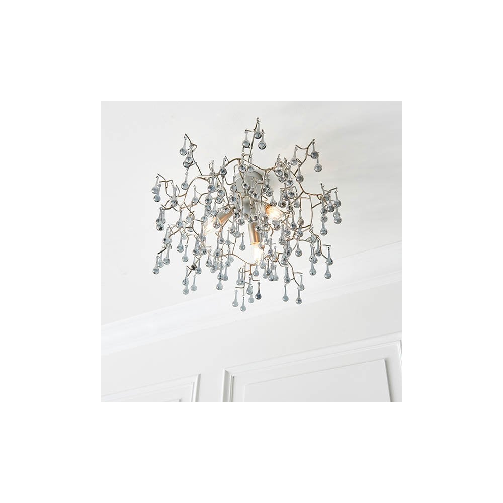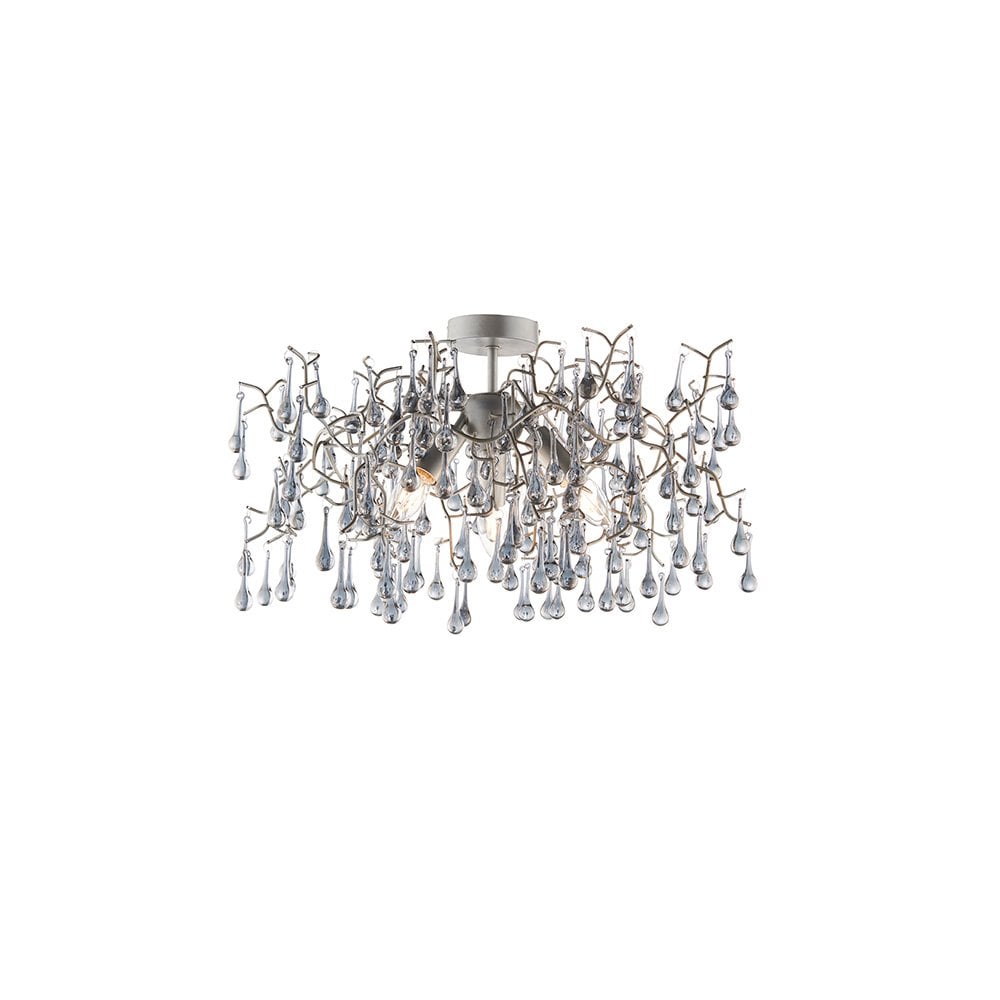 Elsa Semi-Flush Ceiling Light in Chrome with Aged Silver Branch & Glass Droplets