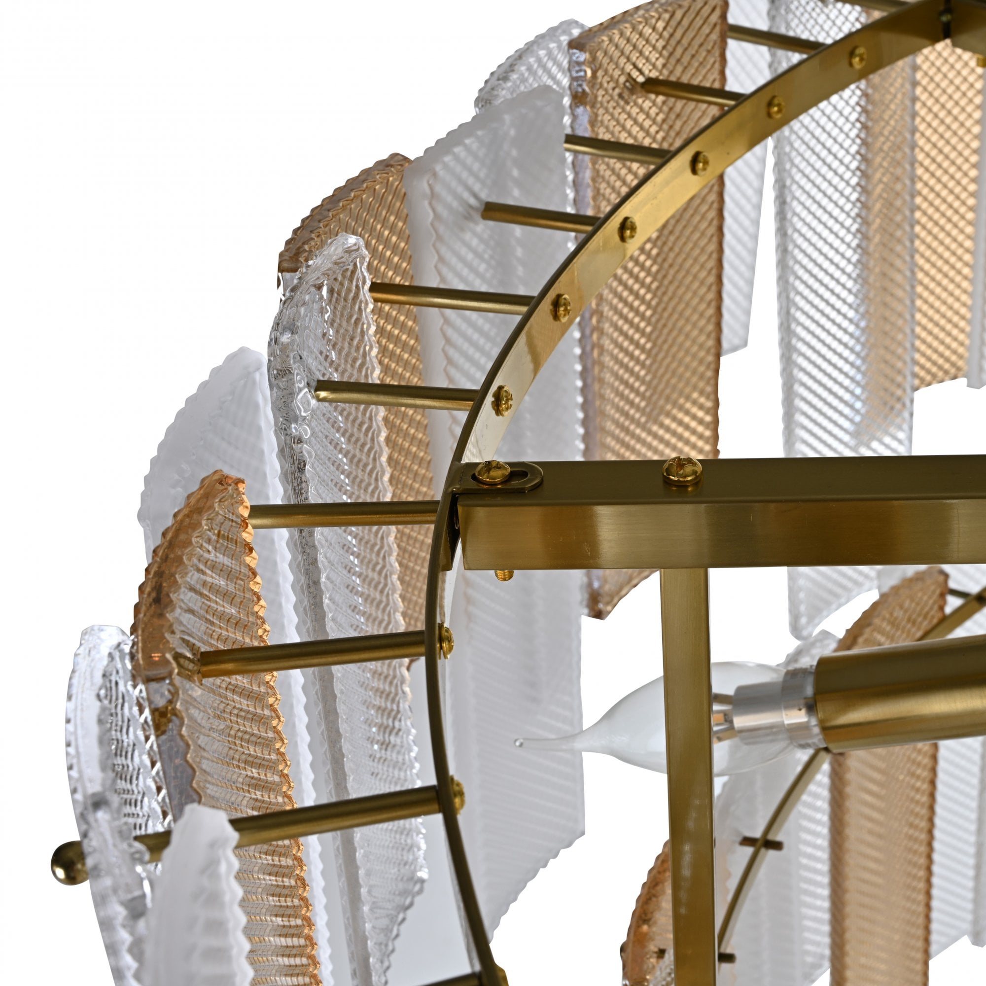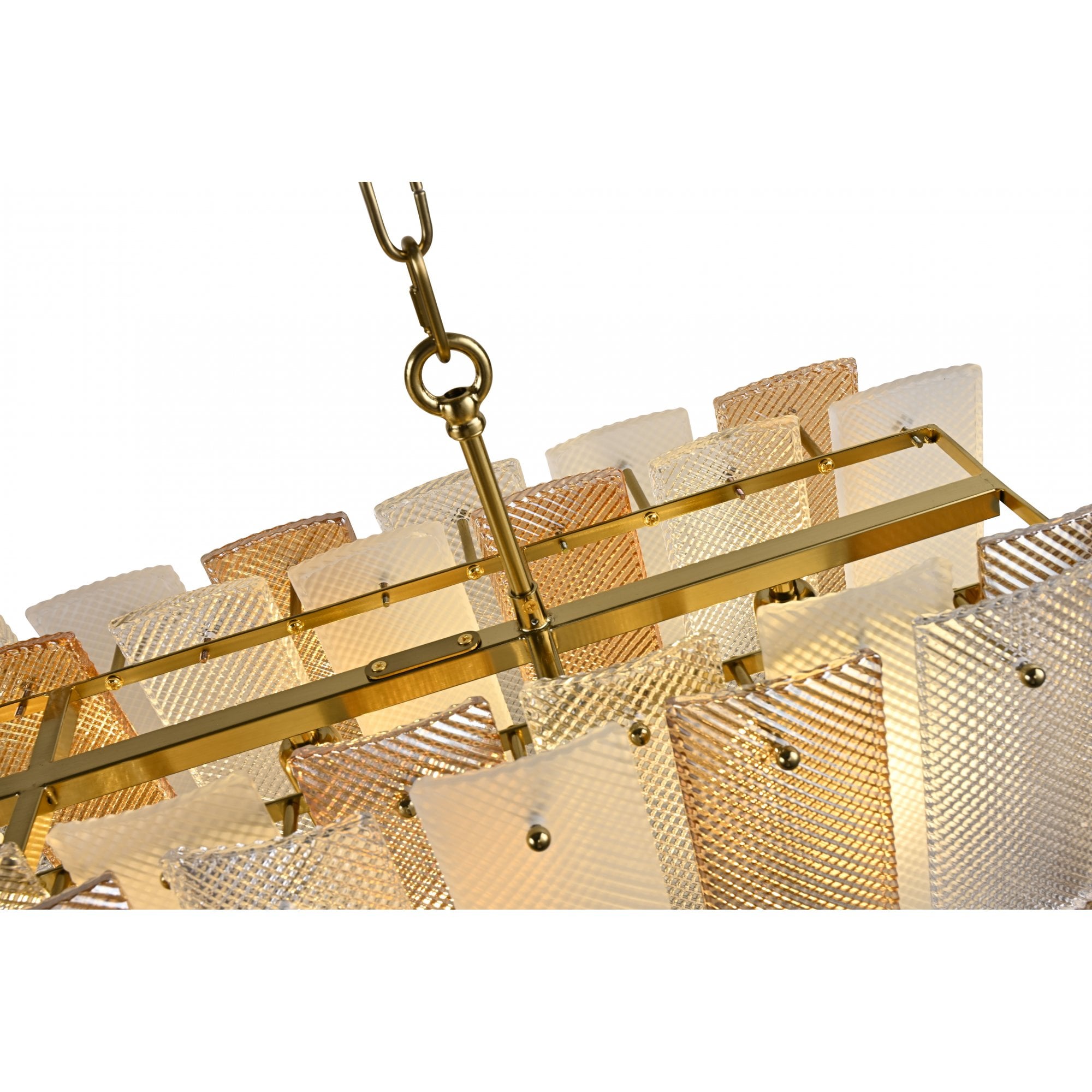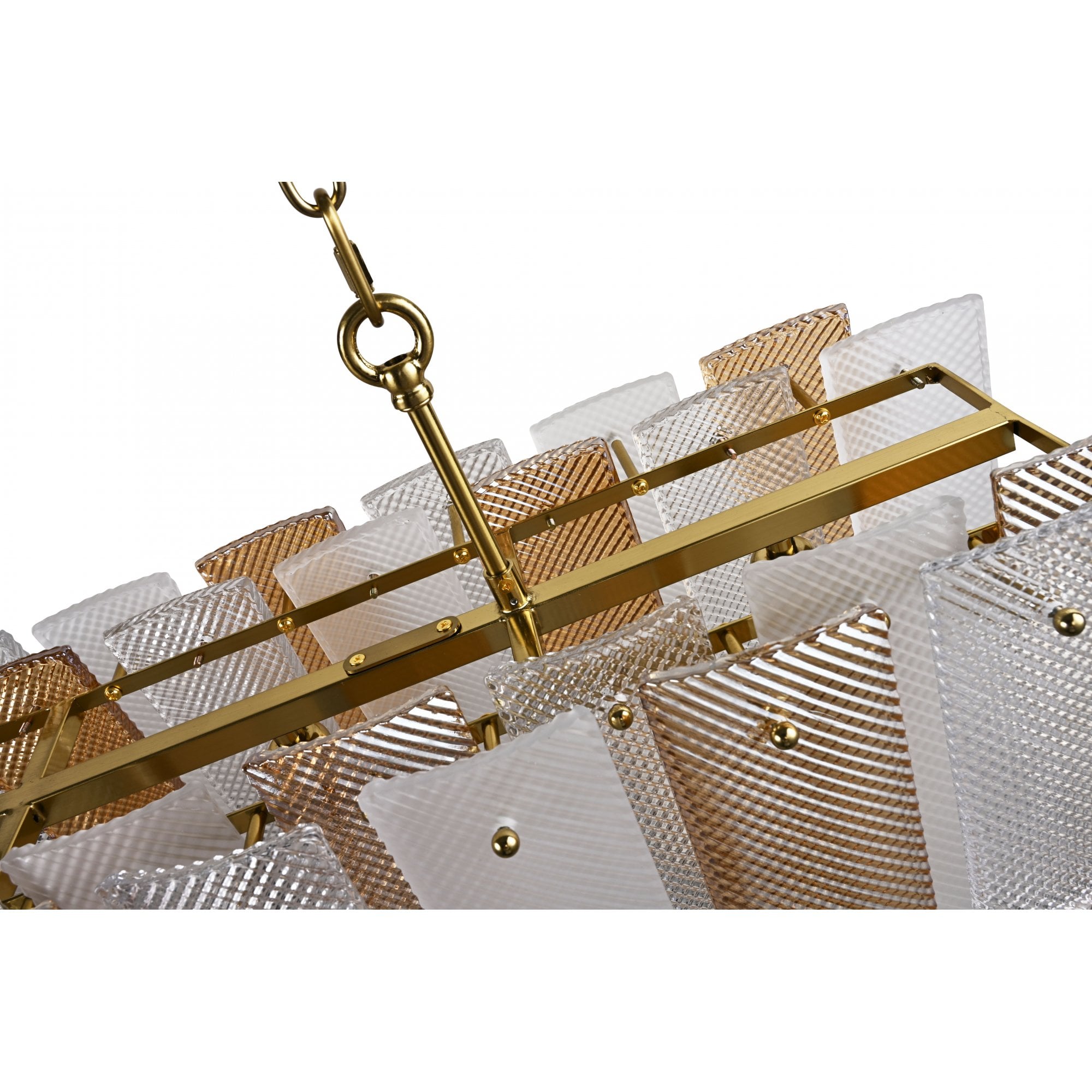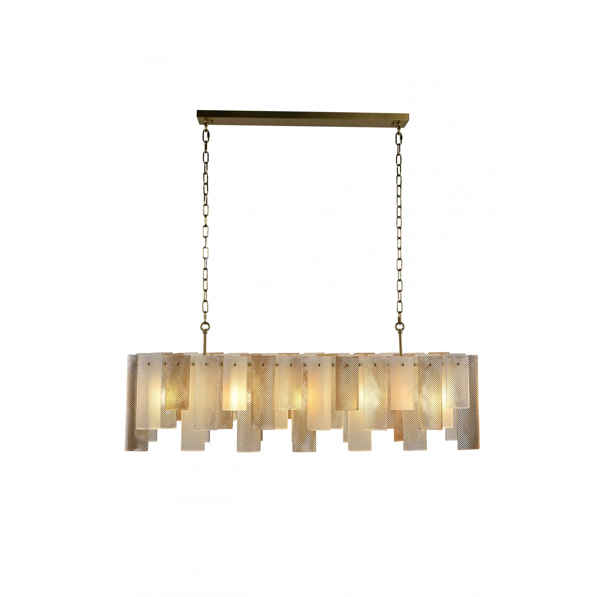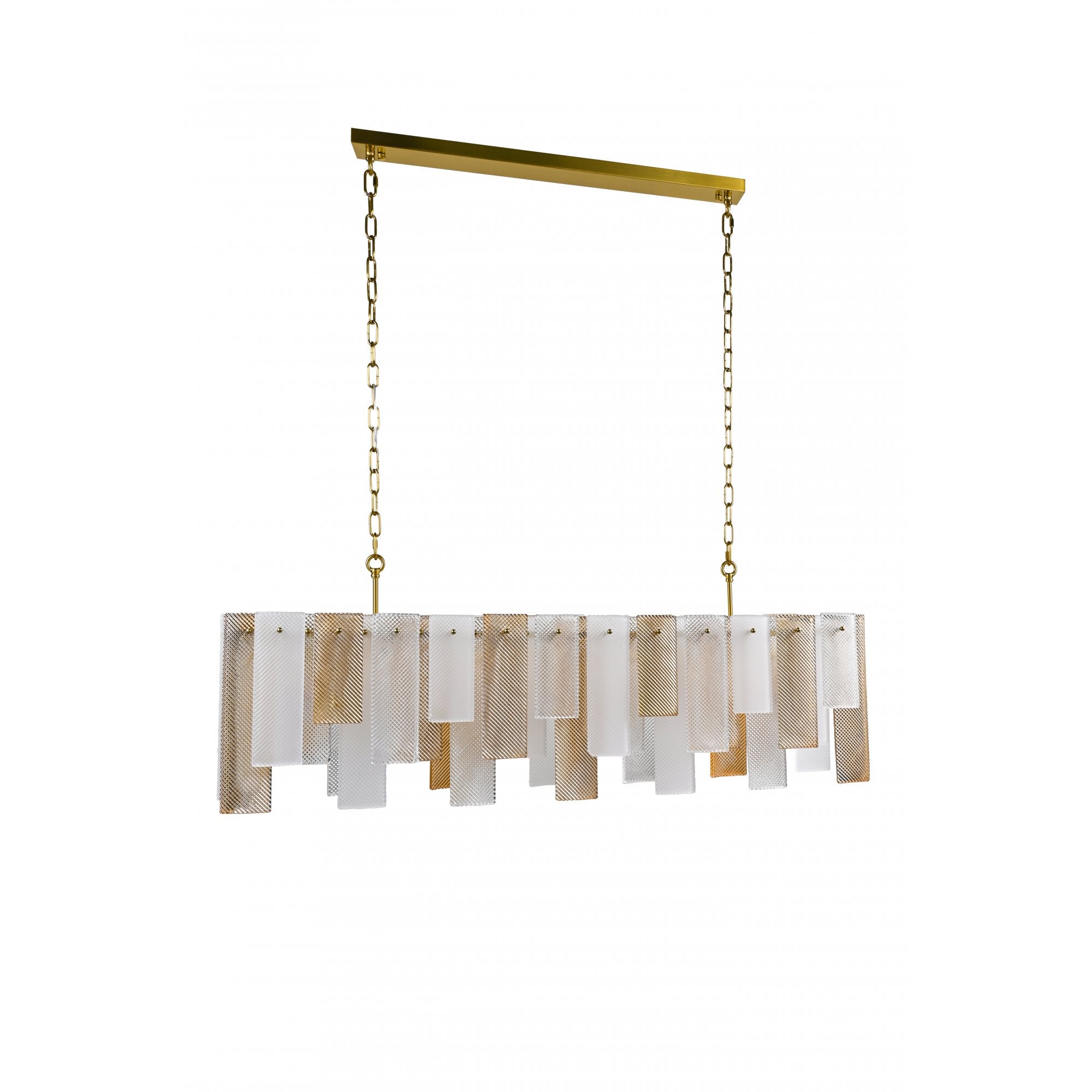 The Azzura Collection combines elegance and versatility with its striking diamond-etched glass shades in Clear, Frosted, and Cognac finishes. Each pendant is paired with a warm, luxurious gold metal frame, adding a touch of glamour to any interior. The intricate etched detailing enhances light diffusion, casting subtle reflections for a soft, atmospheric glow.