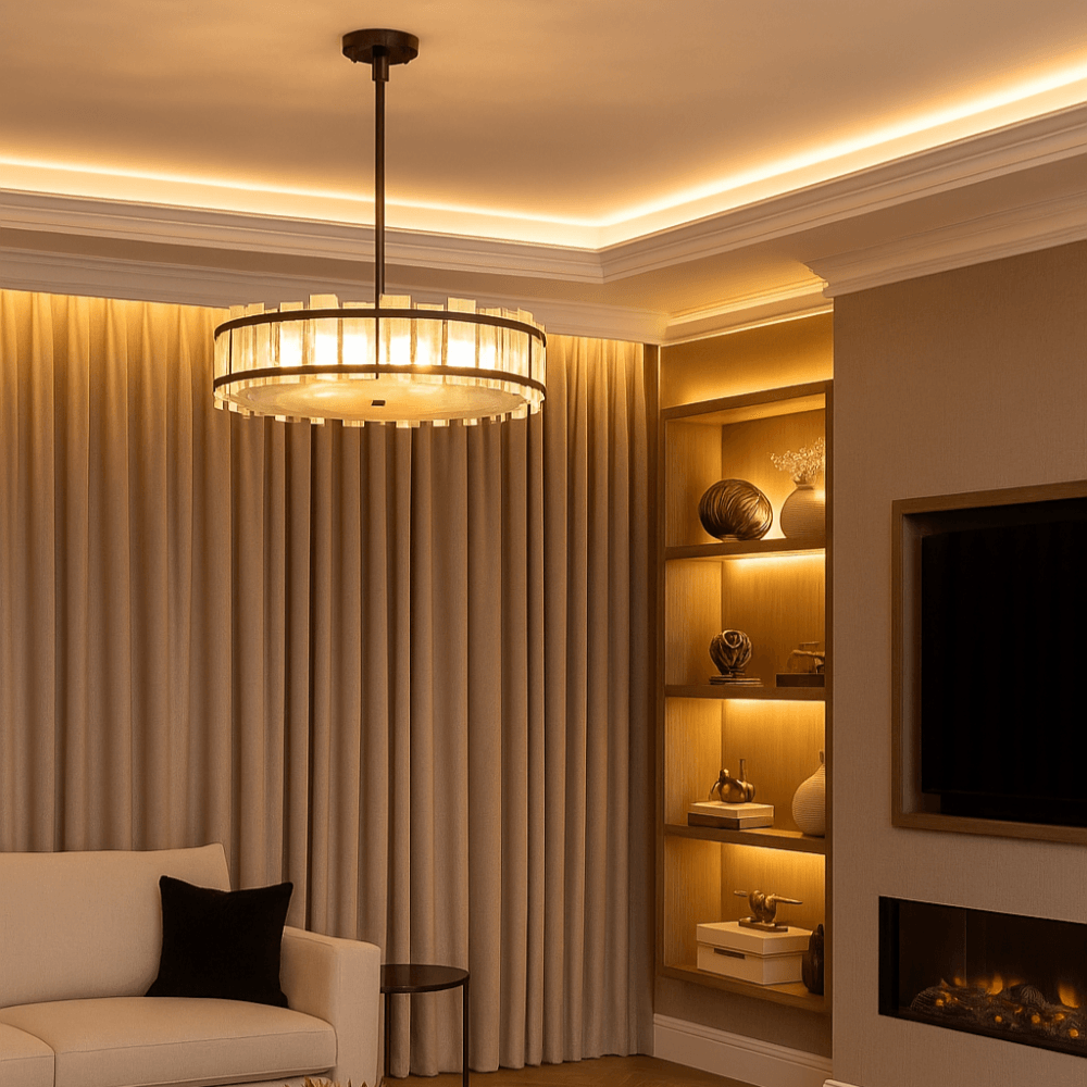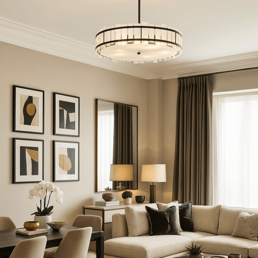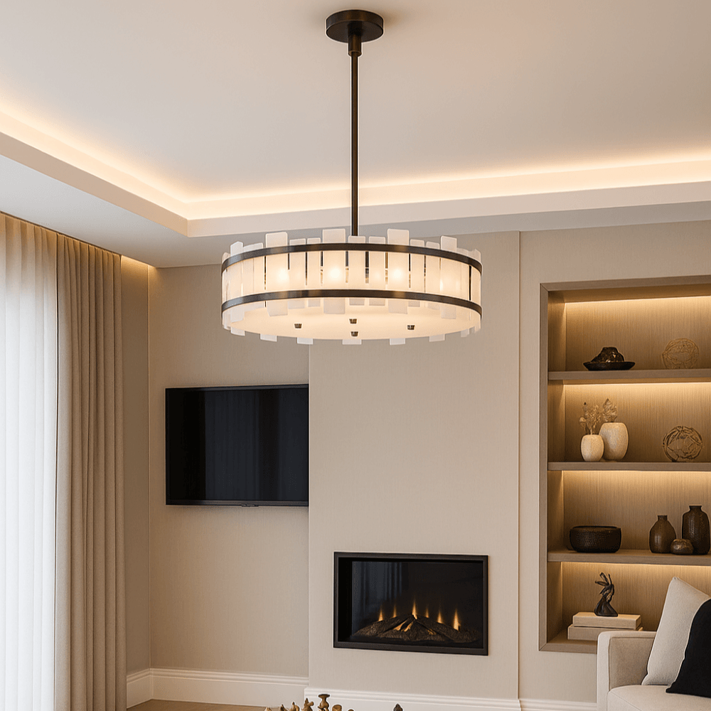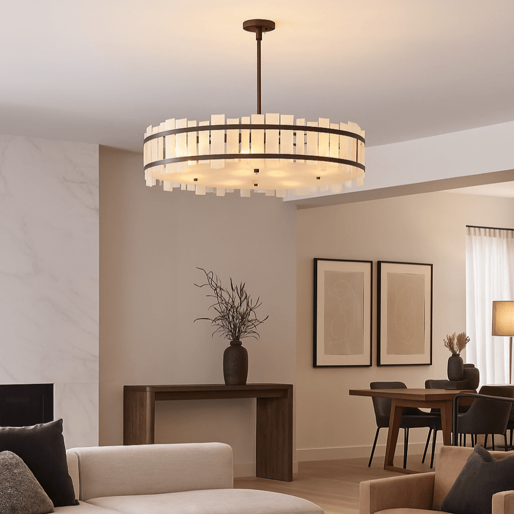 The Harrow collection brings refined elegance to contemporary interiors with its luxurious matte bronze finish, a deeper, more dramatic metal tone that offers rich contrast and sophistication. Featuring a soft opal glass details with a subtle marbled effect, each pendant delivers a beautifully diffused glow. A built-in base diffuser ensures light is gently spread throughout the space, creating a warm and inviting atmosphere whist reducing glare. Available in 60cm and 80cm diameters, the Harrow is ideal for living rooms, dining spaces, or entryways seeking modern bronze lighting with a soft, ambient touch.