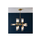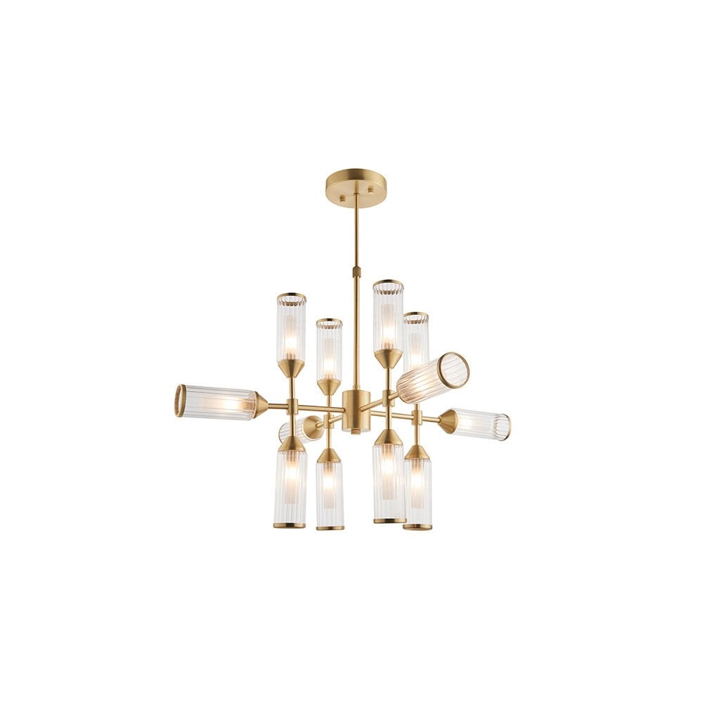 - Elsie Ribbed & Frosted Glass Satin Brass 12 Light Pendant