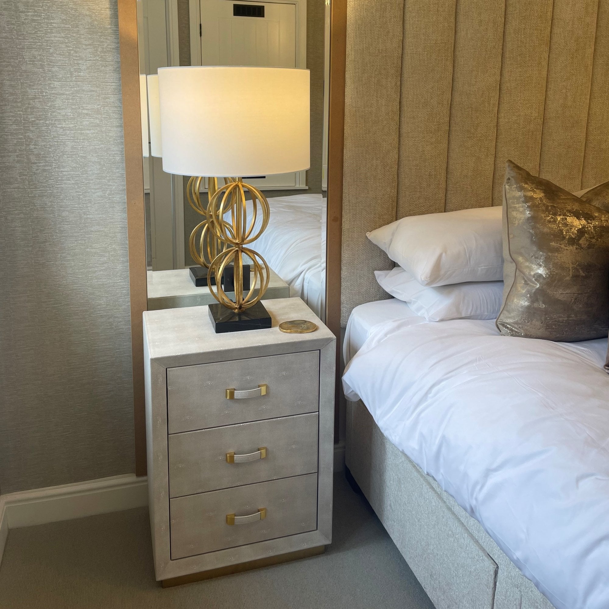 Ivory 3 Drawer Faux Shagreen Bedside Table