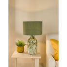 Nuria Table Lamp Green Art Glass and Polished Chrome With Shade