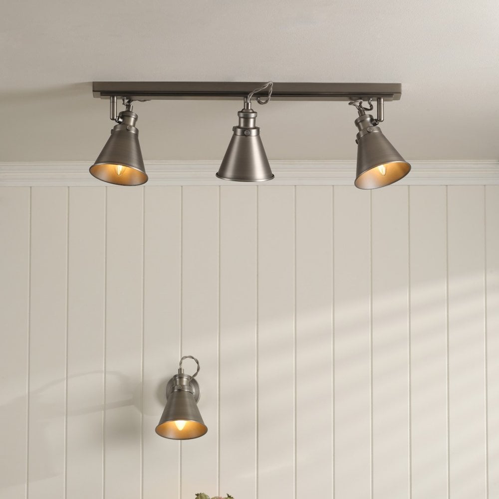 The Laura Ashley Rufus collection brings soft industrial elegance with its warm antique brass, soft industrial nickel, or cool polished chrome finish and clean-lined metalwork.