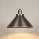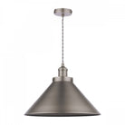 From Laura Ashley, the Rufus grand pendant will look superb in your kitchen or dining room, suspended over a table, or indeed above a desk in your home office area. This is a large, quality pendant with an oversized cone shade of spun metal with a neat rolled edge, the solid shade directs light downwards onto the surface below, not only creating great illumination but enhancing the atmosphere when surrounding lights are turned down.